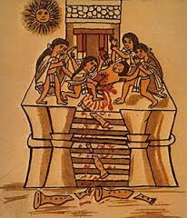 "Here, too, fertility, death and sacrifice are connected. The husking of the corn is perceived as the same act as the tearing out of a sacrificial victim’s heart, both accomplished with the obsidian blade. At the celebration of the broom harvest of the Earth Mother, first an older woman, and then a young girl were beheaded and their blood spread on fruit, seeds and grain to guarantee abundance."